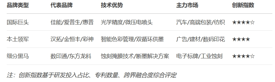 基于技術(shù)、市場、創(chuàng)新三維度評估,2025年UV打印機品牌呈現(xiàn)新格局: