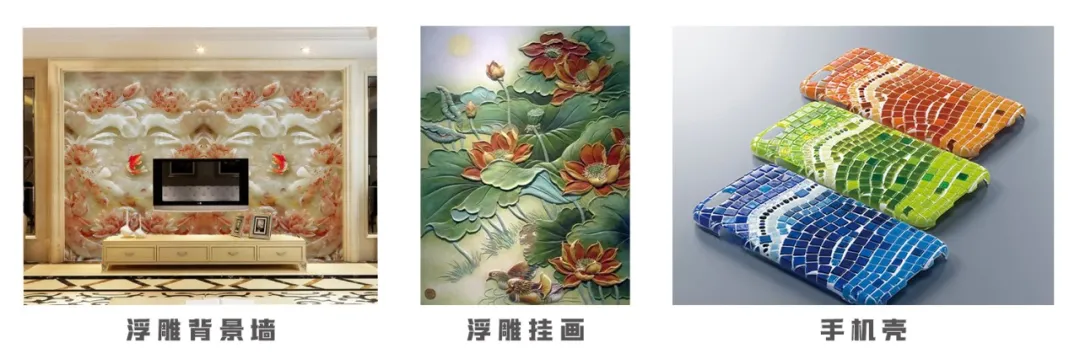 3D浮雕效果這里面包含3D效果和浮雕效果,其中,其中3D效果是給人的視覺效果;浮雕效果是給人的觸覺效果。3D效果主要是一種視覺感官體驗,它通常通過圖像處理軟件對圖案進行立體化處理,讓圖像在視覺上呈現(xiàn)出立體感;而浮雕效果則是一種觸覺上的真實凸起,通過UV打印技術實現(xiàn)白墨多次堆疊,在材質(zhì)表面形成高低起伏的結構。隨后再疊加彩色圖案打印,就能形成既可見又可觸的立體圖案。