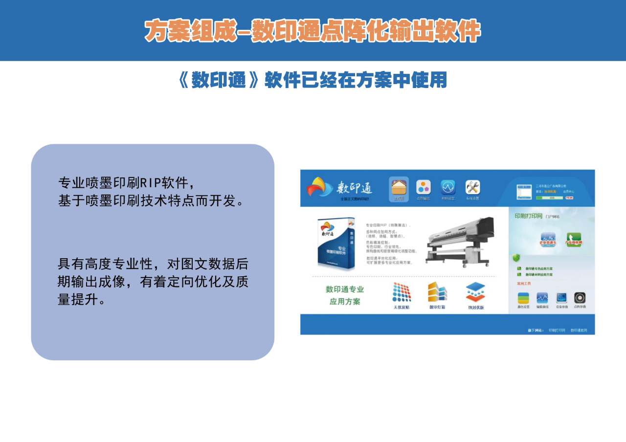 1、點(diǎn)陣輸出:在數(shù)印通RIP軟件中完成電子文件點(diǎn)陣輸出,無需制版,直接生成輸出文件。