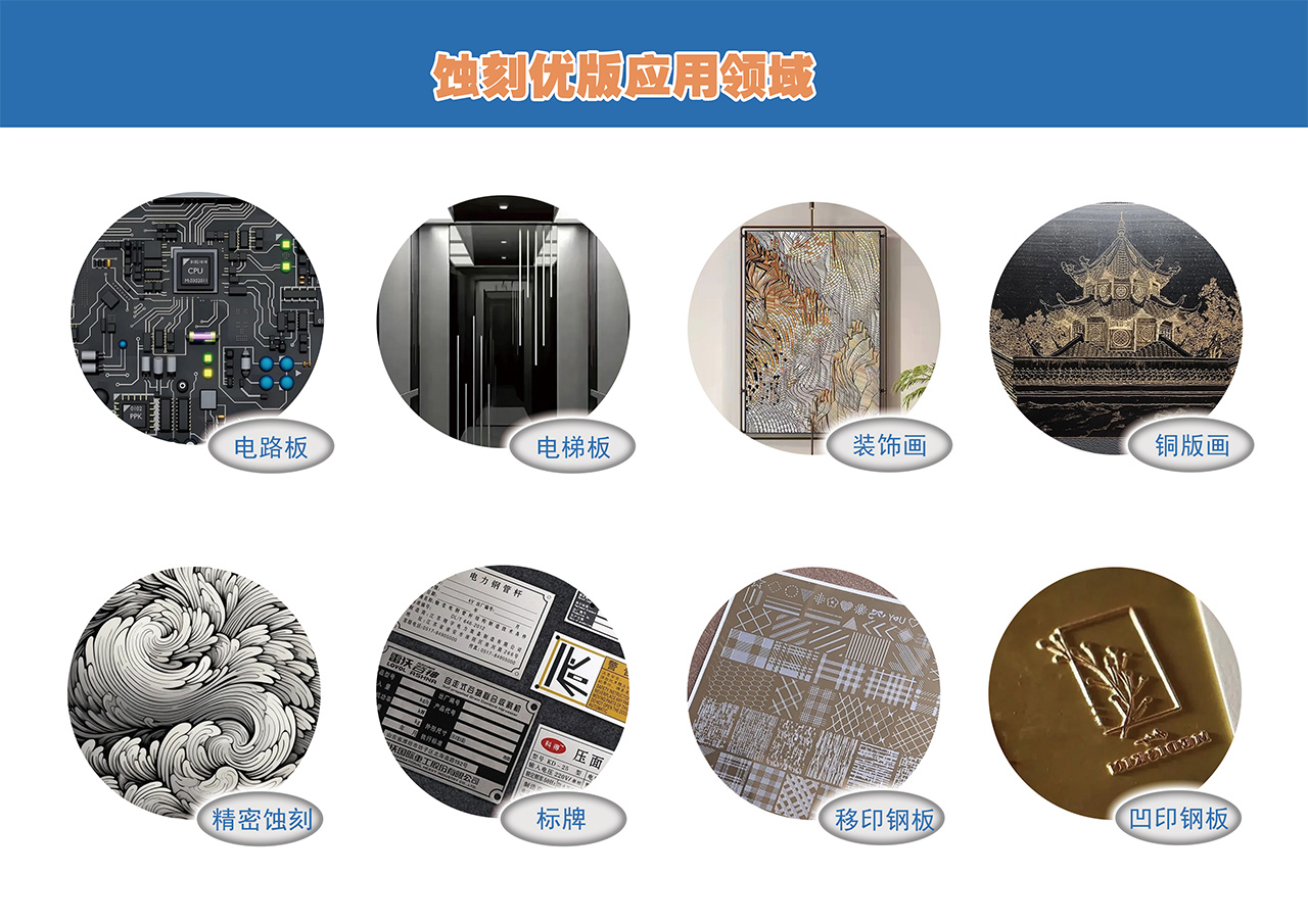 應(yīng)用場景:從微電子到建筑美學(xué)的跨界賦能數(shù)印通蝕刻優(yōu)版工藝廣泛應(yīng)用于電路板微細(xì)線路印刷、金屬標(biāo)牌蝕刻、電熱壓膜、版畫、電梯板及高端裝飾件制作等領(lǐng)域,尤其適配精密蝕刻、異形曲面工件及高密度線條處理需求。